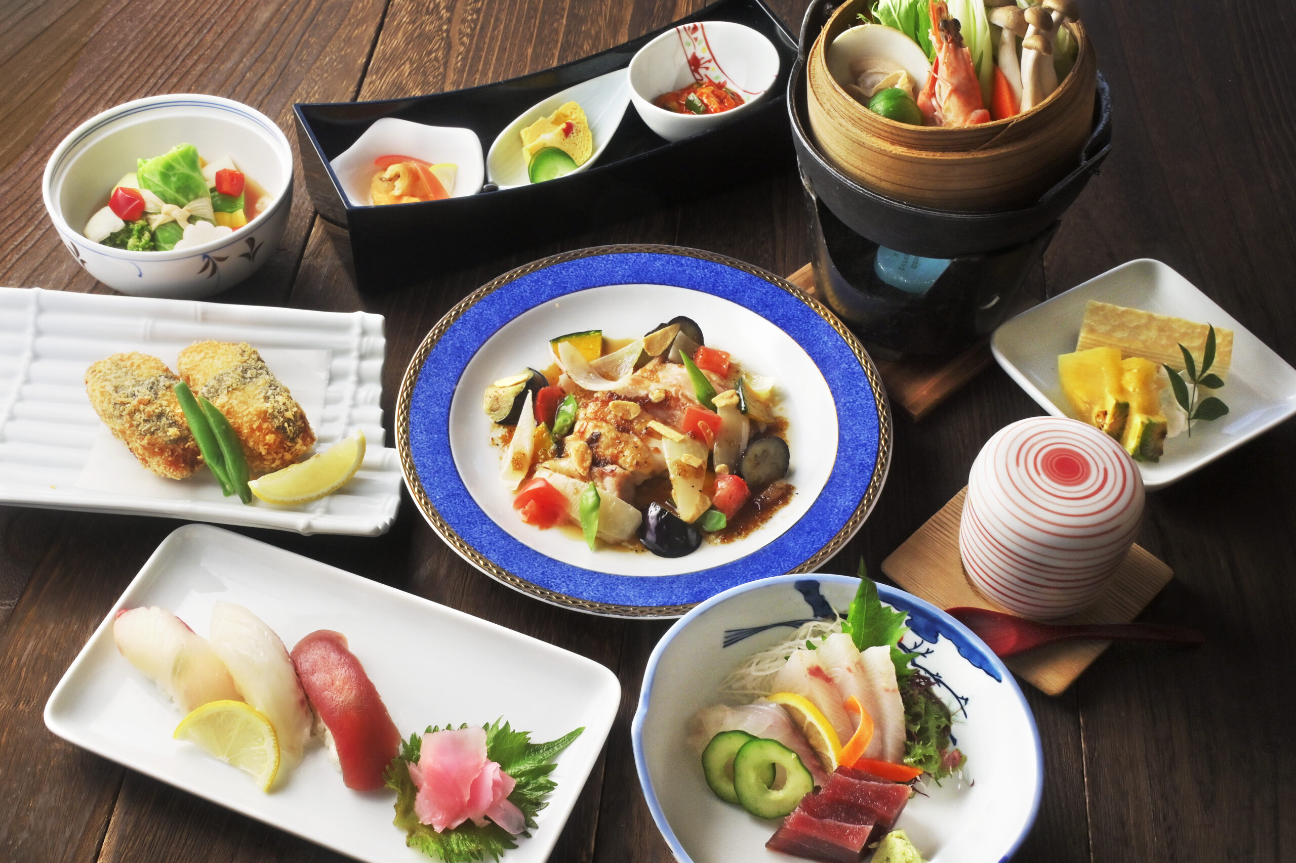 彩り豊かな料理を囲んで、ゆっくりとお食事をお楽しみください。