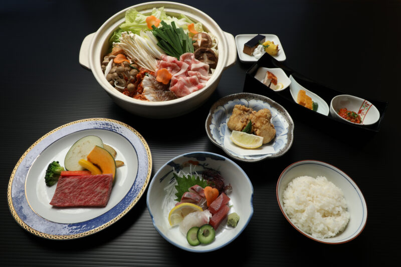 ゴルフパックのお客様は、12月・1月・2月限定メニュー 「長崎和牛極みしゃぶしゃぶと鯛の姿造りコース」又は「料理長おすすめ 冬の贅沢コース」よりお選びください。